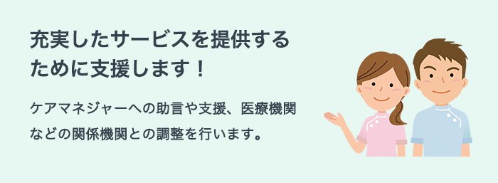 住み慣れた地域でいつまでも自分らしく生活できるようお手伝いをさせていただきます。
